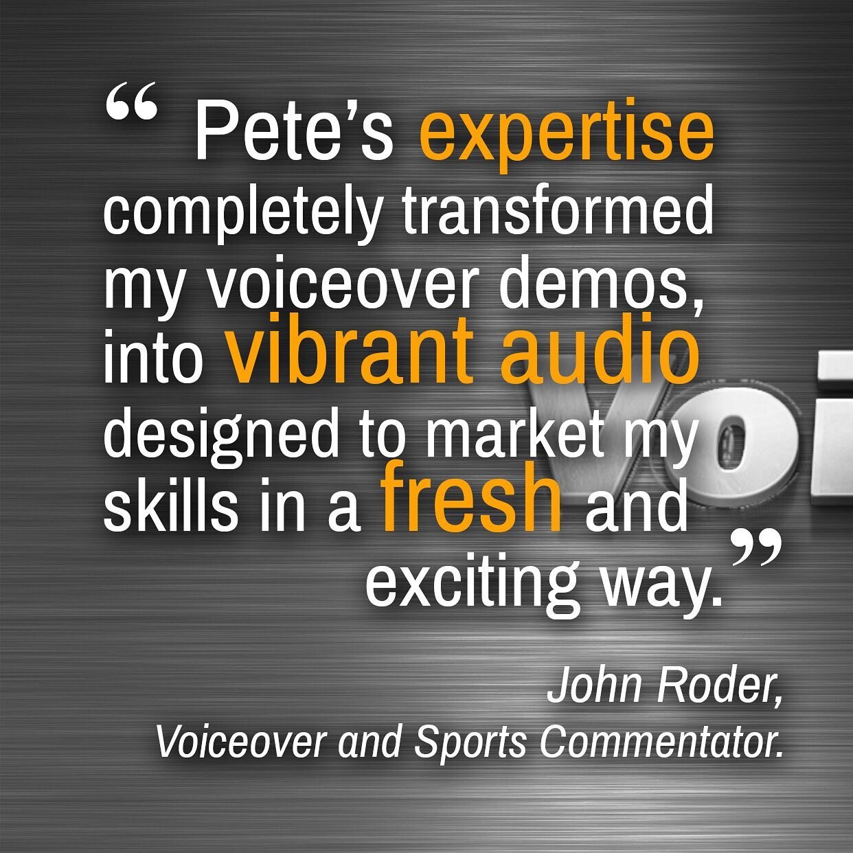 Pete has been a professional voiceover for over 20 years, and has been making voiceover demos almost as long.